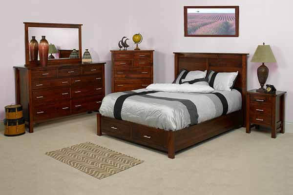 This bedroom suite borrows much of it's inspiration from other shaker style furniture. Thick legs and unique case goods help seperate this set into a league of it's own. A multitude of case good options and alternate beds allow you to create a set of your very own.