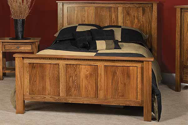 Shown here in Elm. The Lindholt Collection features dentil moulding a tall-legged design. Create your own set with your choice of case goods.